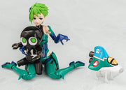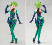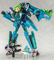 Reina Prowler, a member of the tactical sound unit Walkure in "Macross Delta," joins the "V.F.G. (Variable Fighter Girl)" model-kit series from Aoshima! She comes with a model of a VF-31A Kairos in original coloring, as well as a multi-drone that doubles as a display stand, a fold speaker inspired by the skull from the jacking scene, and a creepy-but-cute skull robot! Reina is easy to assemble with some pre-painted parts; she also comes with two face parts with pre-painted eyes, and waterslide decals to recreate a variety of expressions on the three face parts without pre-painted eyes. This kit is molded in color and snaps together, so neither paint nor glue are needed; stickers and decals are included. The Kairos can reproduce all three of its forms -- Fighter, Gerwalk, and Battroid, too. You'll love it -- order yours today!