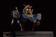 RX-78F00 Gundam has been precisely reproduced in the 1/48 scale as a non-movable bust display model and boasts an overwhelming presence in the port of Yokohama. The panel line of the Gundam's characteristic form and armor have been painstakingly reproduced at 1/48 scale. A LED unit in the headpiece allows the main camera and twin eyes to light up.