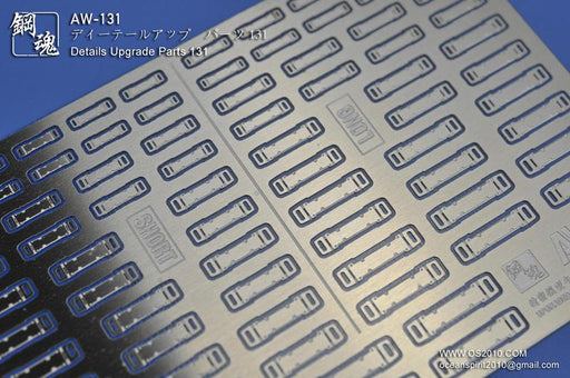 Photo-etched stablizer/latch-type detail-up parts for adding on to mecha armor. Sheet Dimension (approx.): 3cm x 11cm