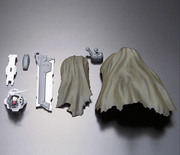 The popular machine comes sharply molded in color and incredibly flexible upon completion. It can hold various dynamic action poses as well as signature stances seen in the show, and detail is spot-on with intricate mechanisms realized on its highly-articulated inner frame as we've come to expect from an MG release. Clear green lenses are provided for its chest, and sides of its head, elbows, and knees, while all cord sections on the body utilizes hologram parts and clear parts so you can view its mechanisms underneath. "Repair parts" consisting of a battle-damaged head and GN Sword's blade, and cloak are packed in this set for building a partially repaired Gundam Exia.