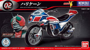 The Hurricane joins the Mecha Collection Kamen Rider Series from Bandai! It's easy and fast to assemble, with instructions printed righton the box, and it includes waterslide decals for the markings. Parts are also included to build an all-black figure of Kamen Rider V3! Don't miss out!