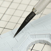 How-To: Attach the blade to a knife handle. We recommend Tamiya 74098 or OFLA AK-4, as well as MADWORKS MH-01. D.L.C. Line Engraver can scribe plastic model kits (ABC/PVC), resin kits, and epoxy kits. Make sure the blade follow the contour of the scribing surface. Do not use excessive force. Excess impact may damage the blade.