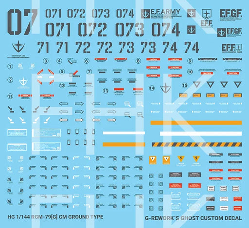 High quality and tastefully designed waterslide decal from Korea specifically designed for HGUC RGM-79[G] GM Ground Type!