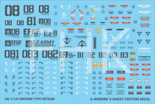 View full detailsHigh quality and tastefully designed waterslide decal from Korea specifically made for HGUC RX-79[G]Ez-8 Gundam Ez8!