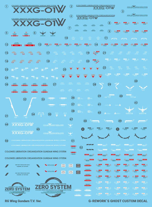 This is a set of high quality and tastefully designed waterslide decal from Korea specifically made for RG XXXG-01W Wing Gundam TV Ver.!