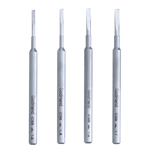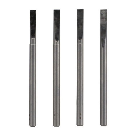 Chisel Bit SetServes as both spin blade and chisel all in one.Dia of blade:2.6mm, 2.7mm, 2.8mm, 2.9mmDia of body.:3.0mm