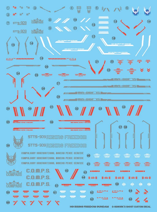 This is a set of high quality and tastefully designed waterslide decal from Korea specifically made for HG STTS-909 Rising Freedom Gundam!