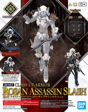 This "Class Up Armor" set from Bandai can be used with their "30MF (30 Minutes Fantasy" series of plastic models. This set of armor and weapons allows your figure to be "classed up" to a higher-tier job with armor replacement -- you can "class up" to Rosan Assassin Slash by combining this armor with that of the Rosan Assassin (sold separately). A long sword and a pair of short swords are included, and the Elemental Core's attribute is "water," and this set has a different face design and coloring from that of the Liber Assassin Slash (sold separately). Place your order today!