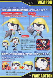 Incredibly cute injection plastic figure of Private Tamama (Tamama Nitohei). No paint or glue are required; like a Gundam kit all the parts are molded in colour and snap together. Stickers are included for detail (like his eyes). When completed, he's got some limited mobility at the main joints.