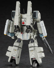 As seen in the Master File "VF-1 Valkyrie Space Wings," here's a model kit of the VF-1J piloted by Boris Glikovsky in charge of attacking enemy battleships in Operation Bullseye! Parts have been added for the reaction bullets (one each for the left and right forearm) and back-mounted super parts; the J-type head is included. The missile hatches can be displayed opened or closed with parts replacement; a chest missile hatch with a circular slit and round finger parts are also included as a bonus. "Macross" visual artist Hidetaka Tenjin provided the package illustration, too! New decals for two versions (Joint Army SVF-13 [105] Ensign Boris Glikovsky, and Joint Army SVF-15 "101" Lieutenant Hideshi Takita) are included. Place your order today!