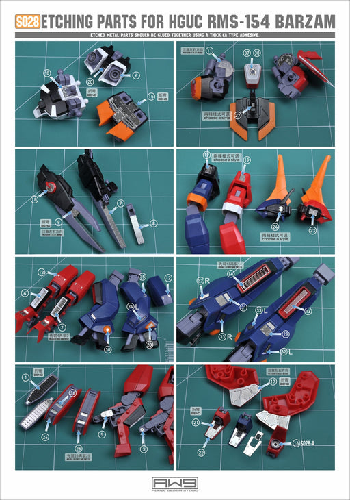 Photo-etched upgrade parts for PB HGUC RMS-154 Barzam (AOZ Reboot Ver). Adding so much more details to the already awesome kit! Waterslide decals...
