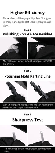 The excellent polishing capability of our Siren glass file make it an equivalent of 10000~12000 grid sand-paper.