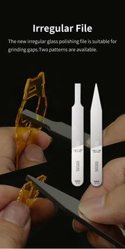 The new irregular glass polishing file is suitable for grinding gaps. Two patterns are available.