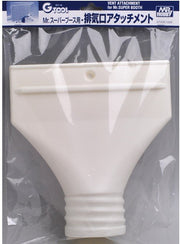 Here's a handy vent to add to your Mr. Super Booth! It measures approximately 21.5cm long, 20cm in height, and the diameter of the round nozzle attachment is approximately 7.3cm. The narrow end which is intended to be inserted into the Mr. Super Booth is approximately 2cm wide.
