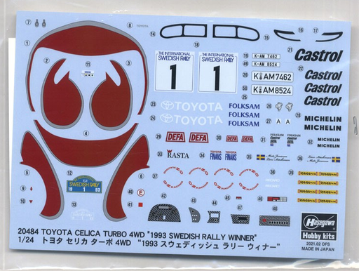 Hasegawa provides us with a kit of the Toyota Celica Turbo 4WD that scored two consecutive victories in the 1993 Swedish Rally! Decals are included...