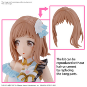 Her bangs can be replaced with other parts to recreate her without her hair ornament.