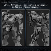 The head, core, arms, and legs all feature the same structure as seen in the game, allowing you to enjoy assembly with the plastic model. 3mm joints are used to attach both shoulder weapons and some left-hand weapons, allowing for a variety of assembly possibilities. The MG-014 LUDLOW, which changes shape when equipped on either the right or left, comes with parts for both sides, and you can choose which side to assemble it for. Order it for your own collection today!