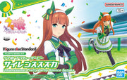 Silence Suzuka from "Umamusume: Pretty Derby" joins the "Figure-rise Standard" model-kit team from Bandai! She'll be fully posable for all kinds of adventures when completed; her skirt can be divided into front and back parts for a wide range of motion. Her skirt can also be spread, as if she's in forward motion, so her sleek silhouette can be maintained when she's at speed. Three different interchangeable faces are included, with the smiling face being tampo-printed and the other two faces using waterslide decals. The kit is molded in color, so her complex outfit can be easily recreated just by assembling it; her ears, hair, headband and accessories are all reproduced in detail. Her upper body can be tilted for a dynamic running pose, and her tail is highly posable too. The horseshoes on the soles of her shoes are reproduced with stickers, and the shoes are jointed for active running poses! Four sets of expressive interchangeable hands are included, and a clear molded base (Action Base 6) is included too. Order her for your own collection today!