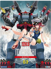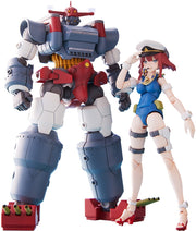 In the 1970s, the "Gattai Yamato" made a big impact with its innovative design where the bridge could transform into a giant robot! Aoshima continues its "Gattai" lineup with this model kit of Gattai Musashi, the robot formed from Gattai Yamato's bridge, together with a kit to build his beautiful female companion Jinguji Nagisa! Gattai Musashi has been redesigned to be heavier and more massive than before; he sports a frame structure common to the series and extra joint parts, so you can replace and combine parts with ease. You can even use parts from the previously released Gattai Atlanger kit! Gattai Musashi can be separated into four machines: Zet Machine, Cord Machine, Slide Machine and Bulldog Machine. Since it's molded in color, you can achieve a result very much like the cover illustration simply by assembling the kit -- painting is not necessary! Lots of weapons are included too, and let's not forget Jinguji Nagisa! She's highly posable once assembled, and comes with three interchangeable facial expressions and five interchangeable hands; a blank facial expression is also included, plus decals so you can create your own custom face for her. She can be displayed with or without her jaunty cap thanks to interchangeable hair parts, and she took is molded in color. Some of Gattai Musashi's parts can be attached to Jinguji Nagisa as well so she can be an armored girl! You'll have a lot of fun with this kit -- place your order today!
