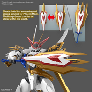 Ryuoumaru from "Mashin Eiyuuden Wataru" has been made into a High Grade model kit by Bandai! The "HG Amplified IMGN" series imagines new arrangements based on the concept of a plastic model kit, and amplies the charm of the characters. This kit's posability takes advantage of his long limbs; the forehead can be built with or without a pattern. Gloss injection molding and gold-plated parts are used to express a vivid texture; the blade of the Horyuken is gold-plated, and the original design pattern is reproduced with 3D metallic stickers. The scabbard shield is equipped with an opening and closing gimmick for the Phoenix form, and it can also store the Horyuken. The Ryuoumaru can transform into its Houou form, and a PET effect sheet is included for the Houou form! Attach the Dragon Claw on the shoulder to the included base to reproduce the Ryuga Fist! Order this incredible mech for your own collection today!
