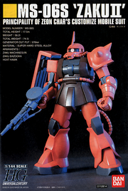 The classic HGUC Char's Zaku II. Little else needs to be said here: fully posable, molded in color, snap assembly. Includes the usual array of Zaku weapons -- the "Heat Hawk", Zaku Machine Gun, and bazooka. Get yours now!