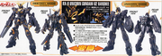 It shares some design and engineering with the previous MG Unicorns it comes into its own with those enormous weapons mounted on the arms as well as new armor parts for the legs and even more psycho frame parts!