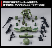 This kit comes with one HGAC Leo unit, and all its available equipment in Leo-green colors! It also comes with a newly molded parachute pack that can be installed in replacement for its backpack hatch.