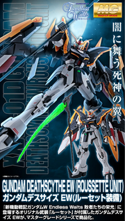 The Gundam Deathscythe EW Rousette Unit is finally coming to the Master Grade series! The kit shares the same molds with Gundam Deathscythe EW regular retail model kit that was released in 2010. This kit, of course comes with its completely newly molded Glory of Losers equipment called "Rousette" which adds a backpack unit to the Deathscythe to give it more aerial mobility.