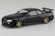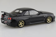 Aoshima adds custom wheels to their snap-fit kit of the Nissan R34 Skyline GT-R! It has a powerful finish with the 18-inch custom wheels and tires; the wheel color will be different for each body color of this kit! It assembles easily with just 29 parts, and it can be assembled as a lowdown version too if you prefer. (Please be aware that it may be difficult to rotate the tires if it's assembled with lowdown specifications.) Order yours today!