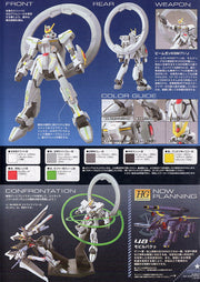 Simple 1/144 scale HG kit of the beautiful Stargazer Gundam comes with its beam shield generator backpack, a Beam Gun KSM71/J, three clear green beam rings and a stainless steel rod to hold the rings in place, plus a display base. Two types of stickers (sparkling gold, and black) are included for you to apply on the kit.