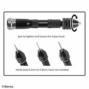 Madworks Multifunction Model Handle for use with Madworks various tools. 100% metal. Chuck is adjustable to fit the tool you need. Ergonomic grip. Handle is 4.75″ (12cm) in total length, grip portion of handle is approximately 1.5″ (3.8cm) in length.