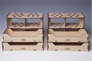 All 6 components can be arranged into different orientation to fit your needs. The chisel handle racks are designed with Madworks’ chisels and handles in mind. They include different diameters to hold our MH01 and MADMAX02 handles, with enough height so that even DLC blades won’t hit the base of the rack.