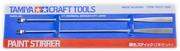 This stainless steel tool is designed for stirring bottle paints, and for blending different color shades. One end is shaped like a small spoon, while the other is flat, like a spatula.