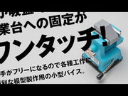 This product is a compact vise designed for model making. The rubber suction cup base allows for one-touch attachment to a workbench. It secures the part you want to work on and leaves both hands free, making it convenient for a variety of crafts. The product's main components are made of lightweight, special plastic for easy handling and a compact size that won't get in the way on a workbench. The included sponge stickers are attached to the holder surface, creating a non-slip surface for convenient attachment of workpieces.
