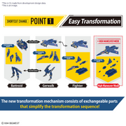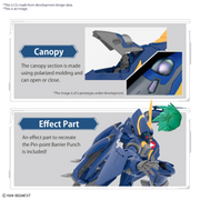 The newest member of Bandai's "HG" model-kit lineup is the YF-21, which competed fiercely with the YF-19 to become the main mecha from "Macross Plus!" The transformation sequence has been simplified into three steps by using replacement parts. Each form features ease of assembly and a wide range of motion. In addition to the Gerwalk, Fighter and Battroid forms, the YF-21's characteristic form and its "limiter release" form can also be reproduced. The head can be detailed with a movable shaft at the base of the neck and a ball joint. The shoulder ensures a wide range of motion by moving the duct part and shoulder joint. The chest features multiple axes of movement, so it can move in a. wide range of directions, including front to back and side to side. The canopy is made with polarized molding, and it can be opened and closed. Effect parts to reproduce its Pinpoint Barrier Punch are included! Stickers are provided, and a set of decals is also available. Order it for your own collection today!