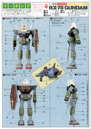 Reissue of Bandai's original 1/100 Gundam kit in a version that includes decals to mark it as the "real type" machine seen here. Originally a mid-1980s release.