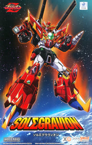 From the anime "Gravion Zwei" comes a plastic model of Sol Sigma Gravion! The combination of Gran Sigma and the four Sol Grandivas, Geo Mirage, Geo Javelin, Geo Caliber and Geo Stinger, can be recreated with the use of interchangeable parts in certain areas. The core of the mecha, Gran Sigma, is fully articulated, combinable and transformable. A non-transformable body part for displaying Sol Sigma Gravion in combined form is included in order to make the model easier to move and display. Additionally, the four Sol Grandivas can be combined and displayed in their G Gladius form with the use of a special stand base. Its Super Heavy Sword weapon and various interchangeable hand parts are included. Special parts allowing you to combine it the the Gran Kaiser included with MODEROID God Gravion (sold separately) are included as well, allowing you to create the Flame Emperor Sol Gravion. Order this incredible plastic model kit for your collection today!