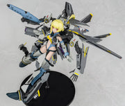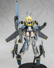The VF-25S Super Messiah joins Aoshima's "V.F.G. (Variable Fighter Girls)" model-kit lineup! The aircraft parts can get into all three modes -- Fighter, Gerwalk, and Battroid -- with parts rearrangement. In addition to the overwhelming volume of the Fighter mode, the main wings can be adjusted, and the micro missile pod covers can be opened and closed. It's also packed with various gimmicks, such as the free movement of the aircraft's legs in Gerwalk mode, and the engine pull-out mechanism in Battroid mode. This kit can be built in its normal specification, or with the super parts equipped! The model kit snaps together so glue isn't needed, and the parts are molded in color, with waterslide decals and stickers attached; you'll be able to get a great result just by assembling it! One pre-painted face and three unpainted faces for the figure are included as well. Order yours today!