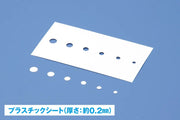 ● This rotary punch punches round shapes from materials such as plastic plates, thin plastic sheets, PVC plates, masking sheets, and cardboard.